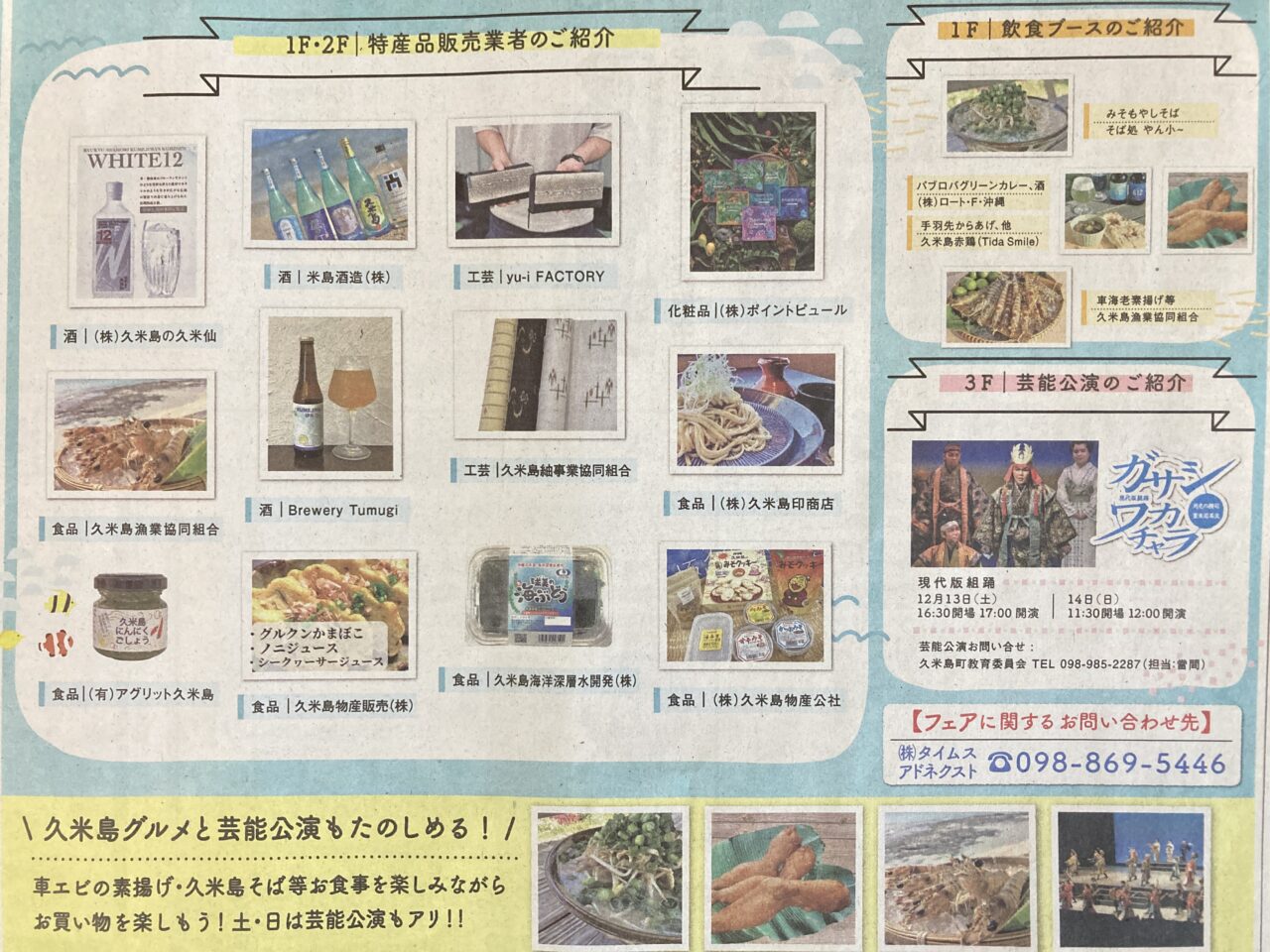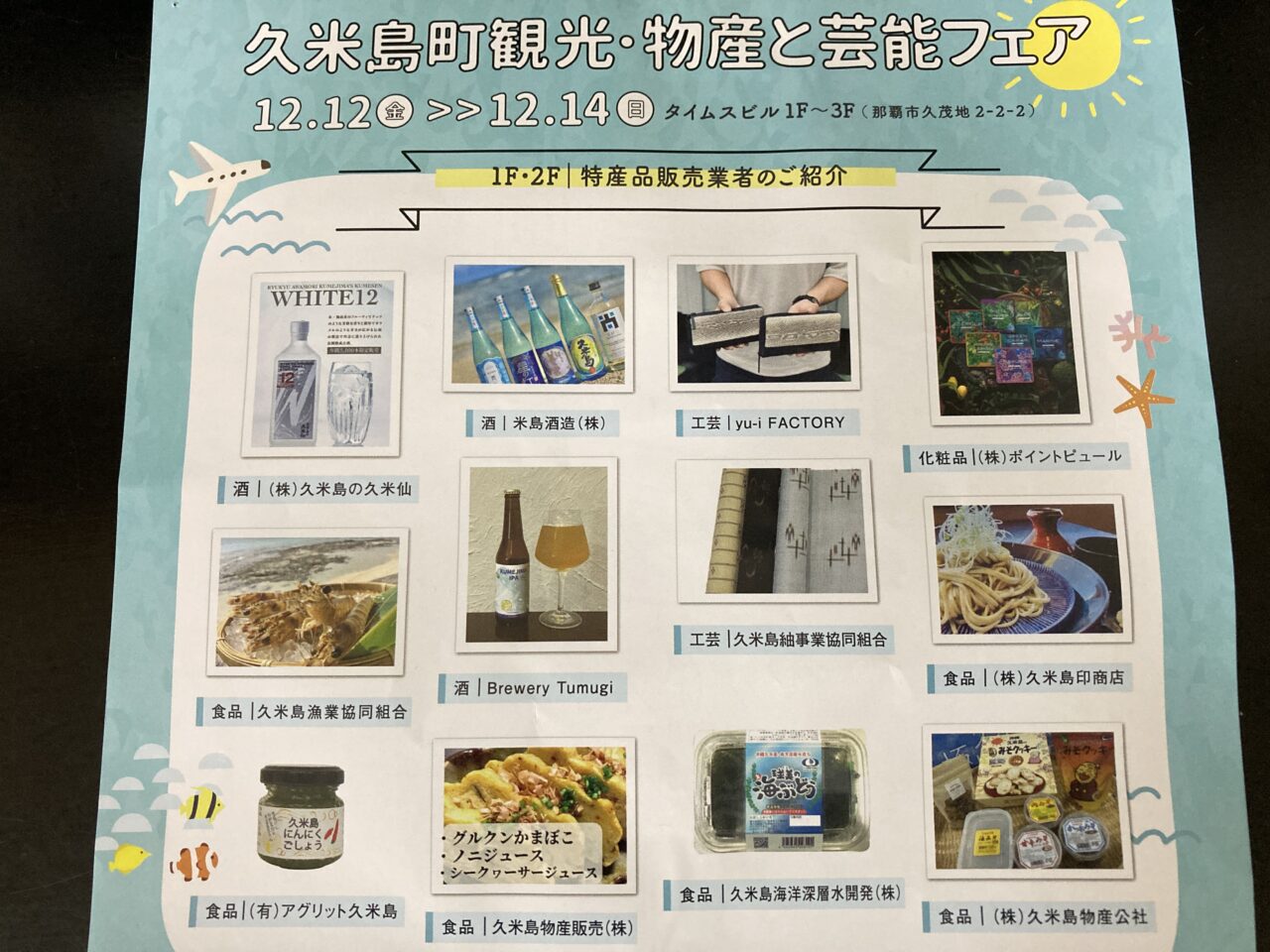 タイムスビルの1階エントランス、2階ギャラリーでは、久米島の人気グルメや工芸品が多数並ぶ予定となっています♪