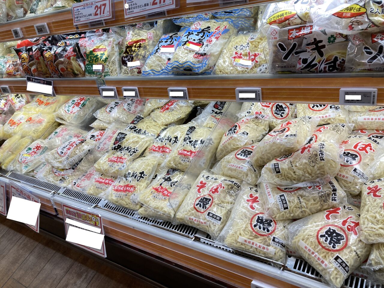 午前中で棚が空に: 県内どこのスーパー(サンエー、かねひで、イオンなど)に行っても、照喜名そばのコーナーだけ空っぽになって午前中のうちに売り切れてしまいます。