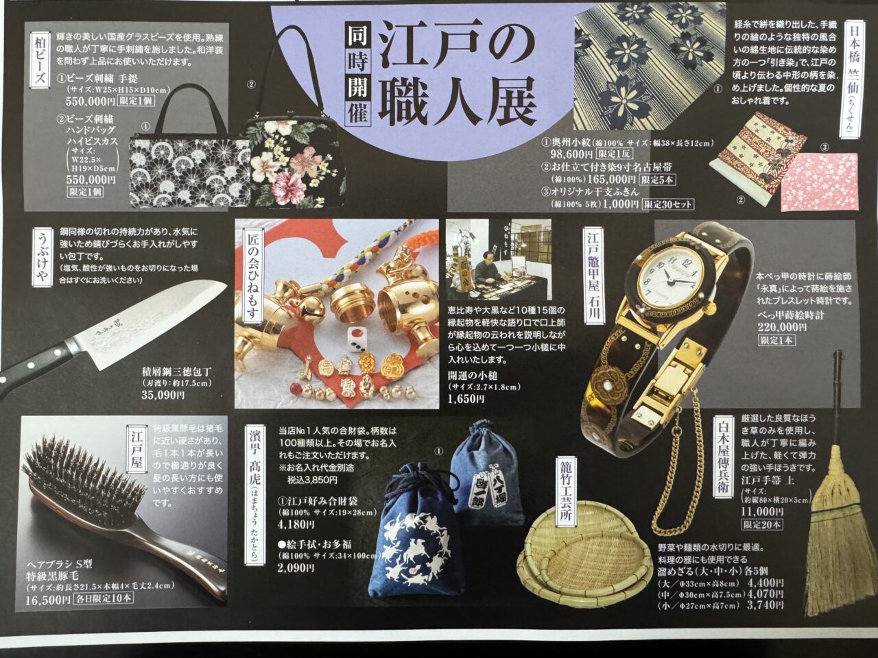 また、食だけでなく江戸の「技」に触れられるのもこのイベントの醍醐味なんです。伝統を受け継ぐ工芸品や、洗練された雑貨も並び、職人と会話を楽しみながらお気に入りのアイテムを探すこともできそうですね。