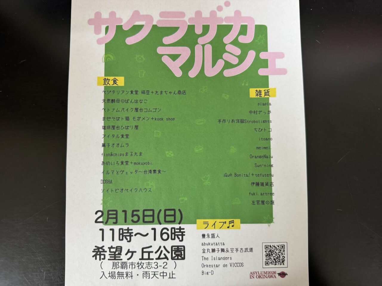 さらに、今回は音楽イベント「ASYLUM 2026 IN OKINAWA」も同時開催となります。公園内に響き渡る心地よいライブ演奏や、伝統の「金丸獅子&空手古武道」の力強い演舞など、お買い物だけではない、心躍るエンターテインメントも満載です。入場は無料で、開放的な公園が会場なので、お子様連れでも気兼ねなく楽しめるのが嬉しいですね♪国際通りから少しだけ足を伸ばして、桜坂の穏やかな空気感のなかで、素敵な「掘り出し物」や「新しい音楽」との出会いを楽しんでみませんか?