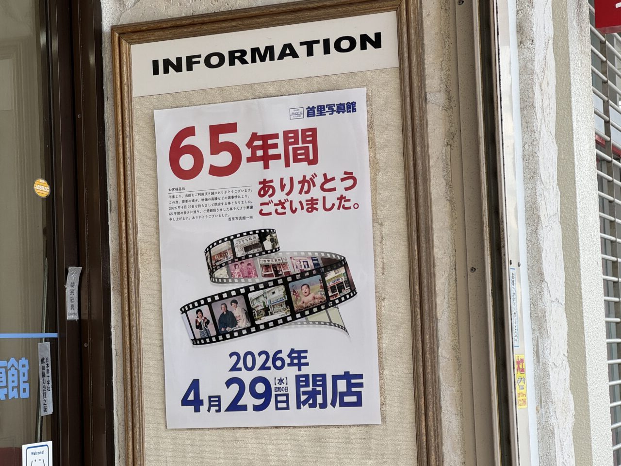 【那覇市】地域のみなさんの成長と笑顔を作ってくれた「首里写真館」が65年の歴史に幕。4月29日に閉店となることがわかりました。