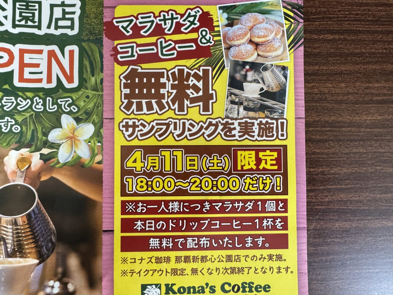 【那覇市】「コナズ珈琲那覇新都心公園店」が4/17のオープンに先駆けサンプリング開催!4/11(土) 18時から限定でマラサダ&コーヒーを無料配布するようです!