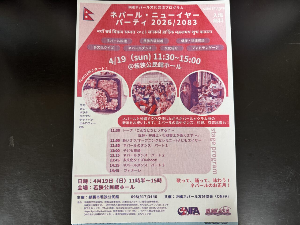 ネパールで広く使われている「ビクラム暦」では、実は4月が新年の始まりとなるようです!今年は4月14日が元旦にあたりますが、那覇ではより多くの方が参加できるよう、4月19日(日)に盛大なパーティーが企画されています。